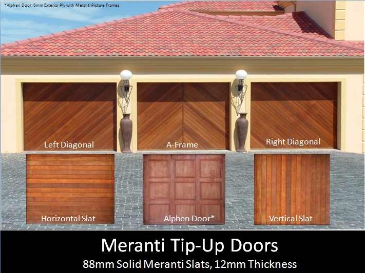Doors are manufactured according to international standards. Extrusions and Sheet metal is imported, but the manufacturing and assembly of panels are handled by our factory. Aluminium designs are smooth or stucco finish, horizontal slat in White, Bronze or Charcoal. Aluzinc Steel designs are stucco (orange skin) finish in horizontal slat or stucco (orange skin) and wood grain block in White, Bronze or Charcoal. Requires less maintenance than meranti doors